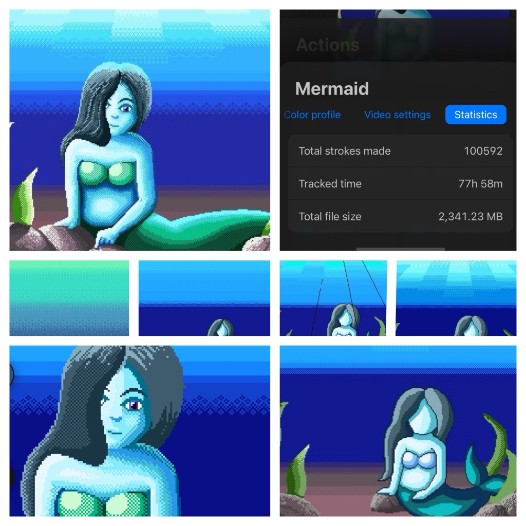All in all, this took me 77 hours and 58 minutes, which is a definite improvement from Dream Haven, which took 122 hours and 38 minutes. I’m super happy with the finished piece, too, though I also love the simple version from the bottom right of the collage. Here’s the full view on the one: